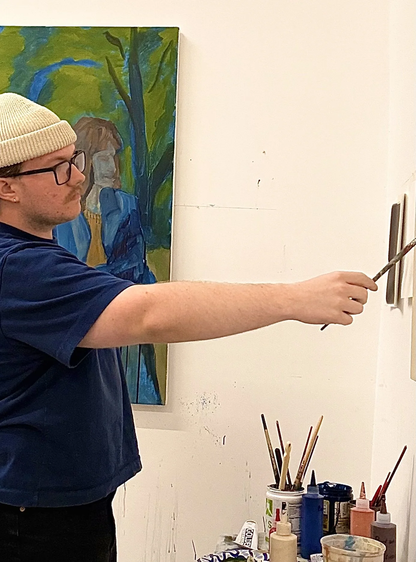 In his practice Colin experiments with altering the viscosity of paints to achieve different form and opacity leading to intriguing textures. This bending the boundaries of paint helps the final product allude to a feeling of past and forgetting. For Colin, this eagerness to paint his direct surroundings comes from a personal desire to preserve life and understand death on a deeper level.